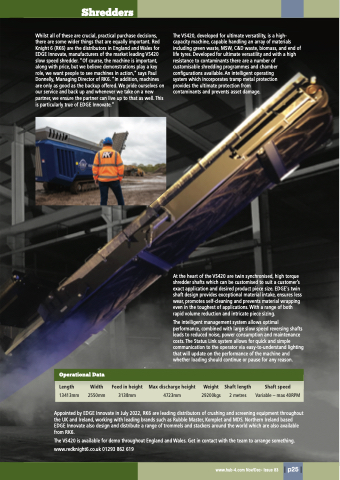 Whilst all of these are crucial, practical purchase decisions, there are some wider things that are equally important. Red Knight 6 (RK6) are the distributors in England and Wales for EDGE Innovate, manufacturers of the market leading VS420 slow speed shredder. “Of course, the machine is important, along with price, but we believe demonstrations play a key role, we want people to see machines in action,” says Paul Donnelly, Managing Director of RK6. “In addition, machines are only as good as the backup offered. We pride ourselves on our service and back up and whenever we take on a new partner, we ensure the partner can live up to that as well. This is particularly true of EDGE Innovate.”