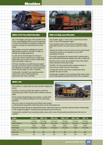 Typically, the machine is set up to process wood or green based material but equally can be changed to meet an RDF specification for waste.