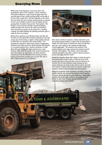 Rob’s desire and drive to produce a better material has seen the company invest heavily in a state-of-the-art wash plant to handle over 5000 tonnes of material per week and with that, open up a new market for the company in high-quality recycled aggregates. “We wanted to put ourselves in the position between your virgin material and standard recycled material.” Rob explains. “We wanted a clean and quality material and whilst it has taken a while to dial the system in, we are very happy with the results.”