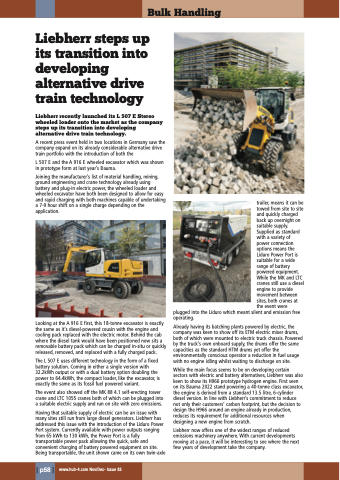 Liebherr recently launched its L 507 E Stereo wheeled loader onto the market as the company steps up its transition into developing alternative drive train technology.