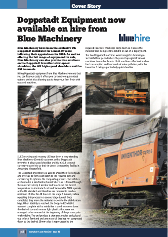 Blue Machinery have been the exclusive UK Doppstadt distributor for almost 20 years following their appointment in 2004. As well as offering the full range of equipment for sale, Blue Machinery can also provide hire solutions on the Doppstadt Inventhor slow-speed shredders, the AK high-speed shredders and the SM trommels.