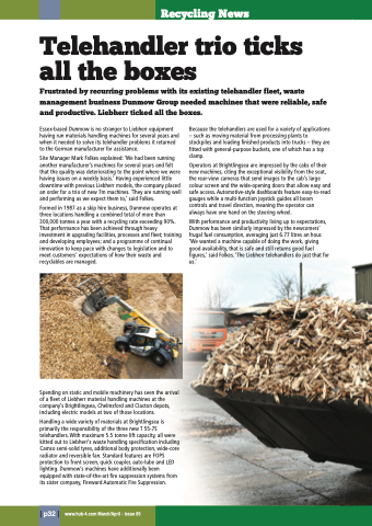 Frustrated by recurring problems with its existing telehandler fleet, waste management business Dunmow Group needed machines that were reliable, safe and productive. Liebherr ticked all the boxes.