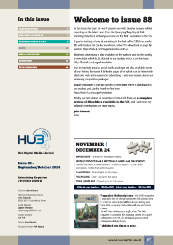 In this issue the team at Hub-4 present you with another bumper edition reporting on the latest news from the Quarrying/Recycling & Bulk Handling Industries, including a review on the MRF’s available in the UK