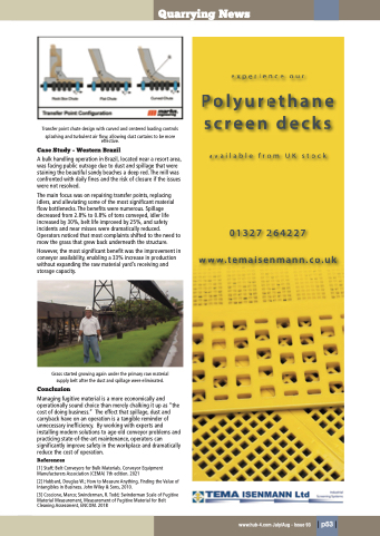 decreased from 2.8% to 0.8% of tons conveyed, idler life