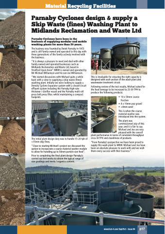 Parnaby Cyclones design & supply a Skip Waste (fines) Washing Plant to