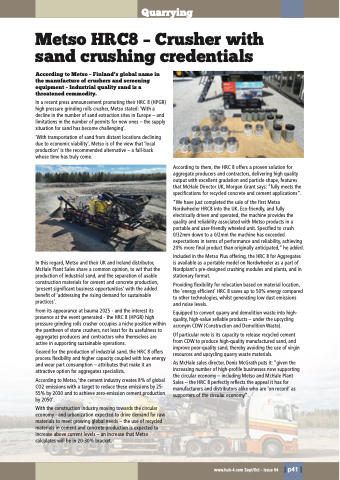 In a recent press announcement promoting their HRC 8 (HPGR)