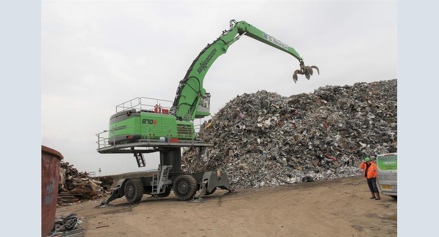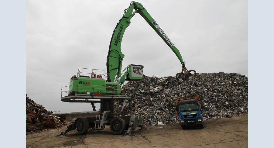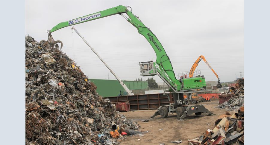 HUB visit to S Norton's metals recycling site to view a Sennebogen 870E Hybrid Material Handler