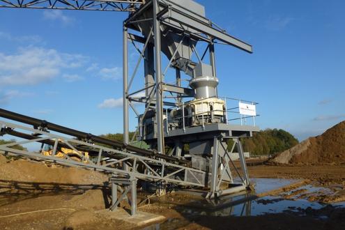 A CMB Rockstar Cone crushes the oversize for CEMEX Swinderby.