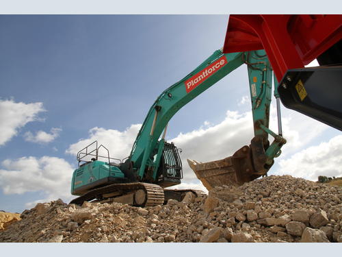 With excavators ranging from 1t up on display, it was the Kobelco SK500LC-10 ME (Mass Excavation) specification machine that really caught the eye as it fed the Terex Finlay crushers. Thanks to its short arm configuration, it is a perfect fit for quarrying and bulk excavation projects.