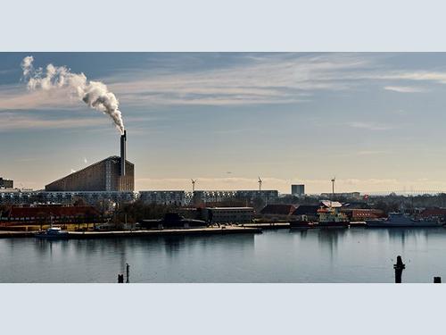 The waste incinerator is easily spotted due to its tall sloped roof that doubles as a year-round artificial ski slope.