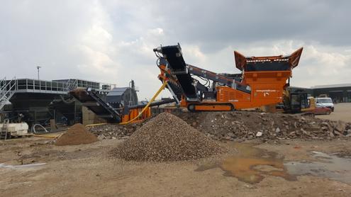 The plant is being put to use to screen a mixture of materials including recycled material, virgin material and reed bed material.