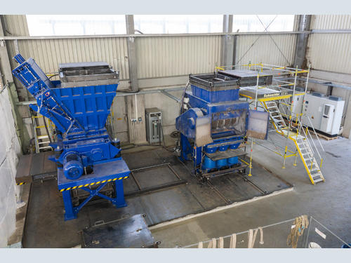 To guarantee the safety of the test facility and protect employees, BHS-Sonthofen developed a sophisticated safety concept in cooperation with TÜV Süd and the approved monitoring body. First, BHS checks that the batteries designated for shredding are actually deep discharged in full. They are only fed into the shredding process if the residual voltage is correct and the batteries pass a visual inspection when they arrive at BHS. A rotary shear (type VR) is used for pre-shredding and a universal shredder (type NGU) is used for the main shredding of the material. This is required so that the material is preconditioned for the downstream processing steps such as drying, classifying and sorting. Both shredders have a gas-tight design and are flooded with nitrogen. Pressure sensors and flow meters monitor the inflow of nitrogen. Additional sensors inside the two machines also check the residual oxygen content. This minimizes the potential risk of fire. Temperature and other pressure sensors in the shredders monitor the process itself. In the event of a sudden increase in pressure, the control system reacts and automatically stops the shredding process. If a fire should occur despite the intervention of the control system, for example due to short circuits or polarity in the battery cells reversing spontaneously, the machines can be completely flooded with water. Both machines are located in a tank to ensure that contaminated water does not enter the environment in this scenario. This would then collect extinguishing water and escaping material.