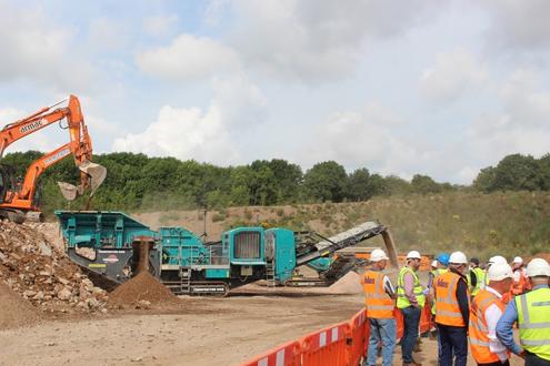 The event boasted 7 machines on static display with a further 11 machines on live demonstration. These working machines included the brand new Powerscreen Trakpactor 550 impactor, which was crushing recycled concrete to produce an MOT Type 1 material, as well as the recently launched Premiertrak 400X jaw crusher with improved bypass chute to increase material flow and excellent under crusher access for removal of wire with hydraulic raise lower product conveyor. The showcase also had the recently remodelled Metrotrak jaw crusher from Powerscreen and the new EvoQuip Cobra, a compact impact crusher, feeding the Powerscreen Warrior 1200 screen with three way split.