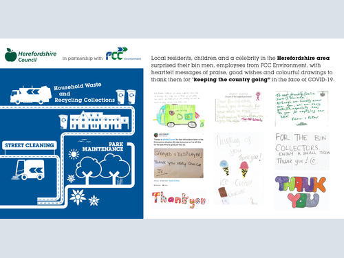 FCC Environment’s Mike Stass said: “FCC Environment has been receiving a number of heartfelt messages from communities across all corners of the UK thanking our teams and wishing them good health. We are delighted to have heard from a familiar face and we thank Mr Challis as well as the wider community in Herefordshire for motivating us to continue our vital duties. We are immensely proud of the FCC Environment team and the wider waste and resource management industry for doing our very best to continue our day-to-day responsibilities during these extremely challenging times.”