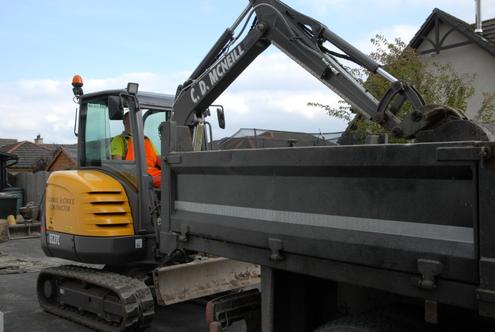 The EC27C features Volvo’s industry-leading comfortable cab for less fatigue and more production. The ergonomically designed cab offers greater leg and foot room, making it one of the most spacious in its category with the machine supplied to C D McNeill featuring an optional high-back seat that includes servo hydraulics levers which are integral to the seat unit, for maximum operator comfort. As a good deal of contracting work involves the removal and replacement of tarmac driveways, paths and car parking areas, CD McNeill has added protective chequer plate to the underside of the dipper arm. “Adding this simple feature saves a lot of damage to the arm when we are loading slabs of broken-up tarmac and helps to keep the machine looking fresh,” explains Grant.
