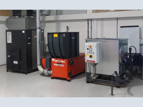 Key components for the solution consisted of a WEIMA Ultra 60 Shredder, WEIMA C140 Briquette Press and CS-200 Woodburning Space Heater.