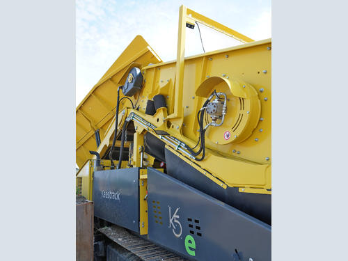 The K5e reaches up to 100 tph in the typical soil processing in Frederikshavn. This value varies depending on the material and in particular on the availability of the 4.5-m³ wheel loader which is also used for truck loading. Even in this case, the plug-in electric operation pays off: no diesel fuel consumption during idling and no maintenance-related operating hours - once the "stand-by" is being set by wheel loader driver Peter Bragaard via the radio remote control, the equipment is back in operation speed in no time.