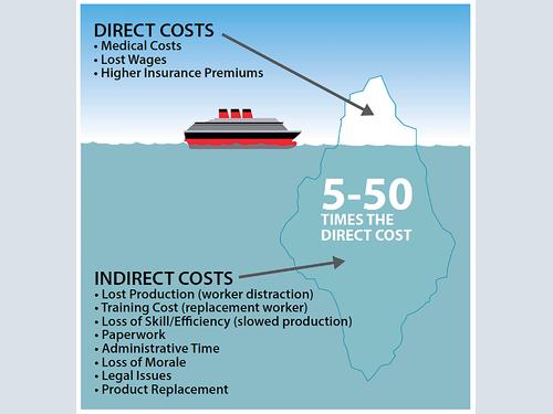 • Direct costs are explicitly associated with an accident or illness. In general, these include fines, medical bills, insurance premiums, indemnity payments and temporary disability payments.