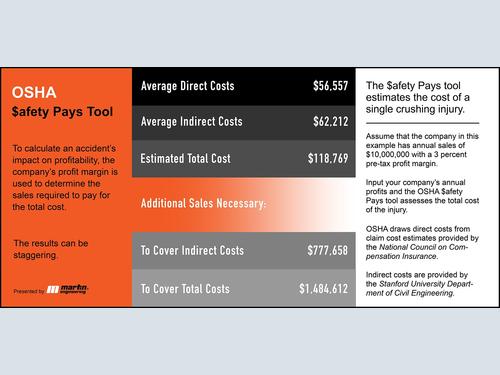 To demonstrate the benefits of safety to a company’s bottom line, OSHA (the Occupational Safety and Health Administration in the USA) created the online tool, ‘$afety Pays’, which uses company-specific economic information to assess the potential economic impact of occupational injuries on that firm’s profitability. The program estimates direct costs (claim cost estimates provided by the National Council on Compensation Insurance) and indirect costs (provided by the Stanford University Department of Civil Engineering) and weighs them against financial details supplied by the company. [Fig.3]