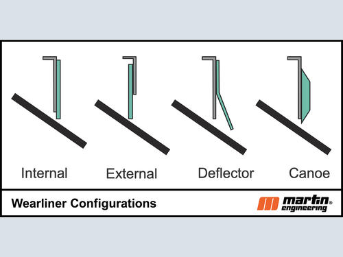 The most important details for a liner are proper installation and ease of replacement. The external liner was developed to address these two issues. With the external liner, the skirtboard is raised above the expected depth of loaded material causing it to rub against the liner instead of the skirtboard wall. The external design eliminates the gap between the liner and the seal.