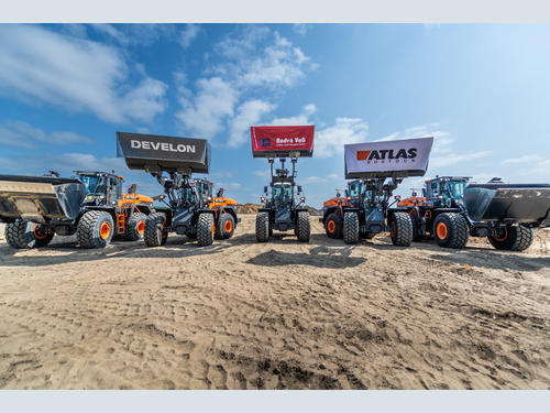 At the handover of the five new wheel loaders, representatives from André Voß Erdbau & Transport GmbH, ATLAS Rostock and Develon were all present. Martin Schmidt commented: "For us, it's not every day we buy five wheel loaders at once. A very special day - also for us." André Voß Erdbau & Transport GmbH has a wide range of activities, ranging from being a waste disposal company, Europe-wide heavy transport and logistics services to the trade in bulk goods. The company has its own storage facilities for the extraction of sand and gravel as well as quay facilities in Stralsund and Wolgast for the delivery of other marine building materials from the Baltic Sea and imports.