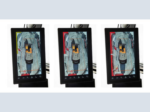 Using six cameras and three radar sensors, the system continuously scans from a 13 metre detection range, enabling operators to accurately understand their environment and effectively eliminate blind spots. Seven selectable viewing modes allow monitoring of the front, rear, left and right sides of the machine at any time.