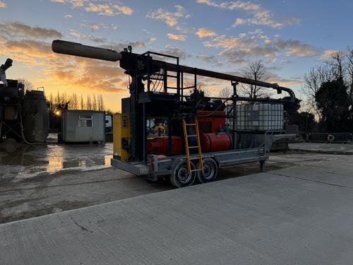 It has been imported by The Concrete Company (Thorney) Ltd and operates at their Peterborough RMX Plant and is marketed through their MJ Bedford Ltd business. Completely mobile it is available for hire to any competitor or piling contractor with a truckmixer or agitator drum that requires the removal of hardened concrete.