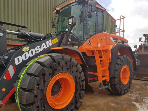 Jack Mason, one of the owners, recently did a deal with local metal recycling business, GLJ Recycling, for one of his stock Doosan DL300 models - but needed to supply the machine with a set of solid tyres rather than the pneumatic tyres fitted to the machine.