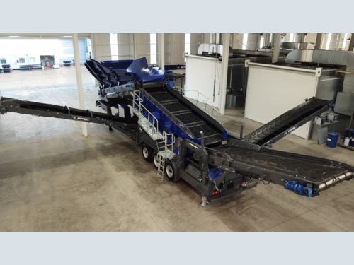Impressive design features include, a low-level feed hopper designed to accept loads from all three sides without the need of construction ramps, 2 or 3 way splitting configuration, hydraulic folding discharge conveyors to facilitate the quick transition from operation to transport and a fully integrated power unit with large service access. A user-friendly control system with sequential start/stop functionality provides exceptional operational performance and unit safety.  Fitted with a tri-axle bogie with an ultra underslung suspension complete with fifth wheel hook-up and air brakes; the EDGE SM186 is exceptionally easy to transport between sites with redeployment taking a matter of minutes.