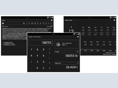 The last three apps can be grouped together as Toolbox Applications. Just as you would expect on your smartphone or tablet, Volvo Co-Pilot comes with pre-installed apps designed to make the operator’s life easier.