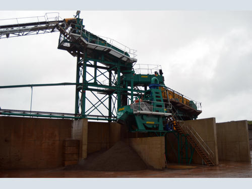The new extended plant involved installing a new 6m x 1.8m 2-deck primary washing screen. This screen scalps off the +40mm which is stockpiled for later crushing and produces two sand fractions which are fed to two DSP compact sand plants. This screen replaced the original 5m x 1.5m washing screen which has now been utilised as a rinsing screen in the new plant. Also, the original plant had produced two grades of sand in a single DSP compact cyclone sand plant but in order to double sand production a second new DSP120 sand plant was installed with one sand plant producing building sand and the other producing concrete sand respectively. The DSPs feature Linatex slurry pumps, Linatex rubber-lined hydrocyclones and galvanised high-frequency dewatering screens.