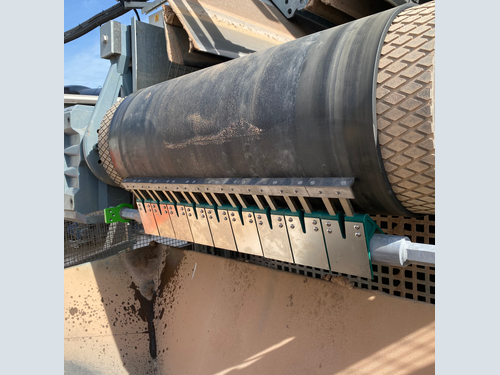 The two belt conveyors came equipped with OEM scrapers. These worked well initially, but the blades quickly became overwhelmed with material - rendering the scrapers ineffective. Consequently, material would adhere to the belt, resulting in around 4 wheelbarrows of carryback forming in piles under the belts every week.