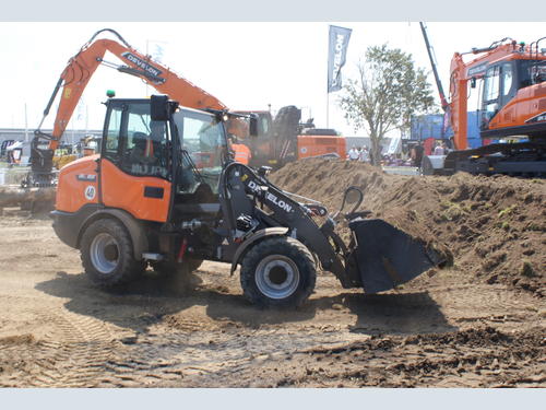 Completing the stnd display will be the new DL60-7 and DL80-7 compact wheel loaders. Just like their much heavier versions in the DEVELON range, these new compact wheel loaders set the industry standard for this type of machine.