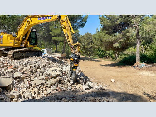 In Vaucluse, France, the challenge was evident from the start: demolish a two-storey industrial building attached to an inhabited house—without causing any damage to the adjacent property. Contractor Guillaume TP completed the task using an MB-PT1650. Each structural element was gripped and removed with millimetric precision, preventing unwanted stress on the neighboring home.