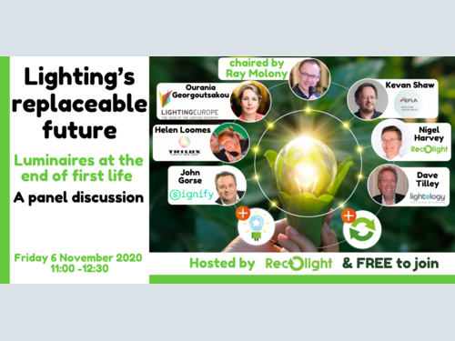 The next online Recolight panel discussion is scheduled for 6 November at 11:00. This discussion follows on from the three Lighting & the Circular Economy webinars hosted by Recolight this year. The discussion will tackle a key issue for sustainability in the lighting sector: