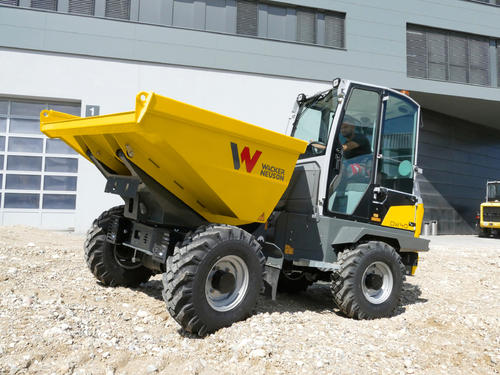 Wacker Neuson’s wheel dumpers can, with no problems, carry out a variety of transport tasks even on the most difficult of terrains. The articulated pendulum joint, which all models by Wacker Neuson are equipped with, ensures this. The dumpers are impressive with high off-road capability and traction – even on difficult ground surfaces – and are particularly maneuverable thanks to their compact design. With this, the dumpers can fully play to their advantages as compared to trucks in material transport. Thanks to numerous configuration options, such as various skip versions, cabin versions or safety options, the machines can be matched to individual customer needs.