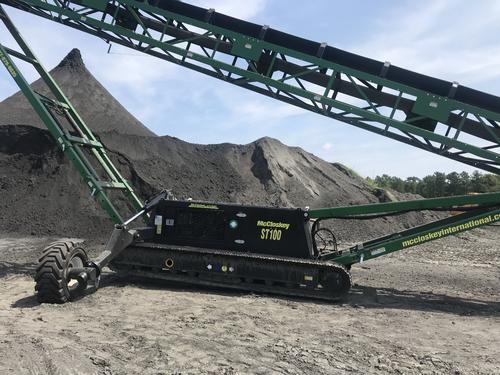 The All Terrain ST80T blends all the benefits of onsite track mobility with the high productivity of a radial conveyor. The ST80T has a lift axle option which allows it to switch from track mode to radial in seconds.