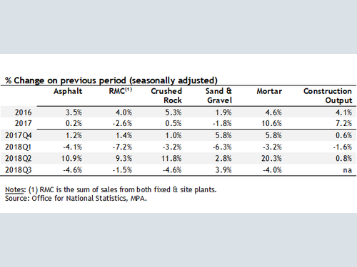 Mixed picture for construction-related mineral products as demand fails to pick up in 2018Q3