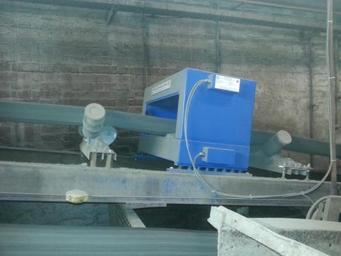 A visit was arranged and details taken from three conveyors transporting mixtures of sand, cement , water and pigments to add colour. Samples of the material were supplied for testing as previous experience had shown that some pigments can exhibit extremely high product effect leading to the detector “false tripping”.