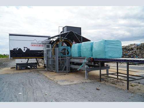 Oosterveld approached the Avermann Group (Netherlands) to find a solution that would improve fire safety and space at their customer’s landfill site in Hengelo, Netherlands. They joined forces with waste compaction experts, CK International and Finnish-based, Cross Wrap to develop a unique mobile baling system and conveyor - offering the customer greater flexibility. CK International used their automatic twin ram as the base for this new product and in order to have an integrated plastic wrapping system, Cross Wrap customised their unit, also making it mobile.