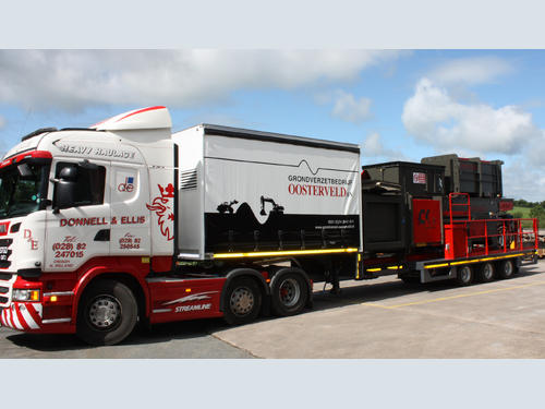 Gareth McCullagh, Engineering Manager at, Northern Irish-based, CK International says, “This mobile version certainly has the end-user in mind. Automation and simplicity were key factors when developing the machine. It is fully integrated with a mobile conveyor and Cross Wrap direct wrapper and also has options for wire tying or plastic strapping systems. It is fully kitted out with access ladders, walkways and handrails. Essentially, it’s a full turnkey solution for any customer. Transport is made much easier with the mounted ejector ram on the rear of the main body.”