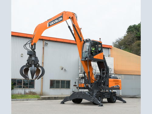 Incorporating new undercarriage, arm and boom, elevating cab and counterweight designs, the new DX270WMH-7 is built to offer next level performance for the toughest tasks across a wide range of material sorting and handling applications. The DX270WMH-7 offers a greatly improved performance without compromising on dimensions, with a longer reach and a higher lifting capacity, smart features such as a virtual wall safety system and greater cooling pack protection with a reversing fan. To meet the demanding nature of recycling work, the displayed machine will be equipped with enhanced cab filtration and fire suppression systems.