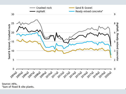 The latest statistics released by the Mineral Products Association (MPA) show that ales of heavy-side building materials, including aggregates, ready-mixed concrete (RMC), asphalt and mortar saw unprecedented declines during the second quarter of the year.