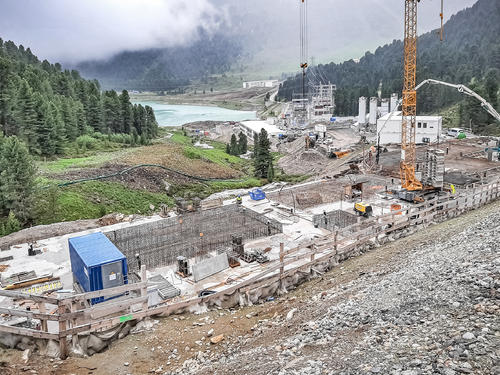 • Reservoir Kühtai: dam with 6.7 million m³ bulk volume, 510 m crest length and113 m dam height