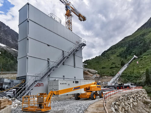 Thanks to its enormous output capacity of up to 145 m³/h hardened concrete and its outstanding “mobility” EUROMIX® 3300 SPACE is the first choice for a challenging infrastructure project in the Tyrolean Alps. To produce the better part of the required raw materials, i.e., the concrete aggregates, on site, GRAVEX - SBM’s container-mobile processing, washing, and separating system - will go into action for the first time. The modular design of the mobile SBM plants facilitates producing aggregates and concrete in a resource-efficient way at 2,000 m above sea level.