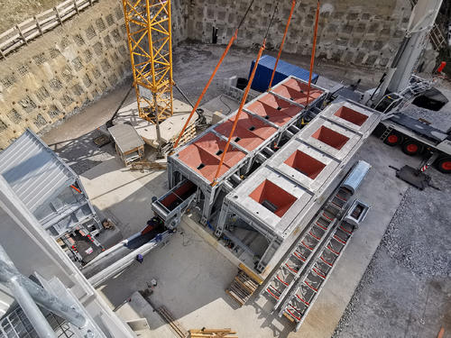 In stage 3 the concrete mixing plant will finally be completely connected to the mobile mineral processing plant GRAVEX facilitating continuous supply of high-quality concrete with aggregates produced directly on site from autumn onwards.