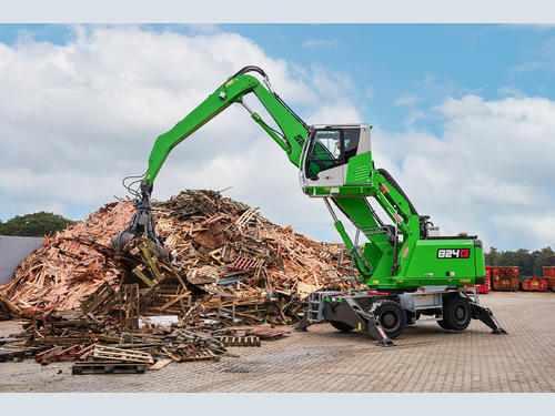 With the 824 G mobile excavator from SENNEBOGEN, a machine has now been put into operation that is specially designed for material handling in recycling and scrap management. Its robust construction, a reach of up to 12 meters, and a comfort cab that can be raised to a height of 3 meters make the 824 G the ideal helper for loading and sorting work.