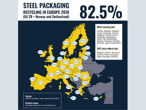 This new record rate, which represents data from 2018, confirms steel as Europe’s most recycled primary[1] packaging material and means that more than 8 out of 10 steel items put on the EU market this year have been recycled into new steel products.