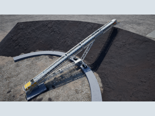 The unit will be used as a bypass stacking conveyor and the material will be spread using dozers.