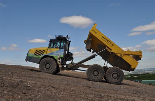 Specified with scissor tailgates, flotation tyres and the Malcolm Group’s unique wrapped livery, the articulated dump truck was supplied by Terex Trucks’ UK dealer, TDL Equipment. The machine, which is now on the outskirts of Glasgow adding muscle to a landfill restoration project, showcased what 65 years of manufacturing know-how looks like when it got to work near the village of Lesmahagow for the development which has received more than £8m in funding and could power up to 300 homes.